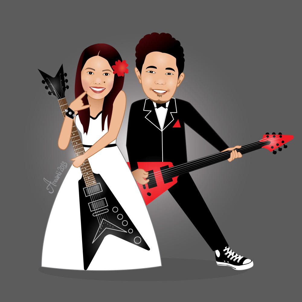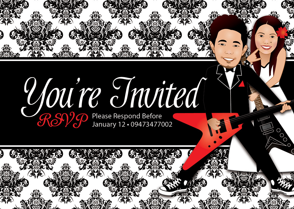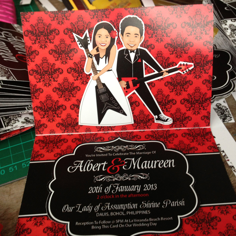 I was lucky and excited to have made this project. This is a wedding invitation for my close friends, Mau and Al. They are both metalheads! \m/